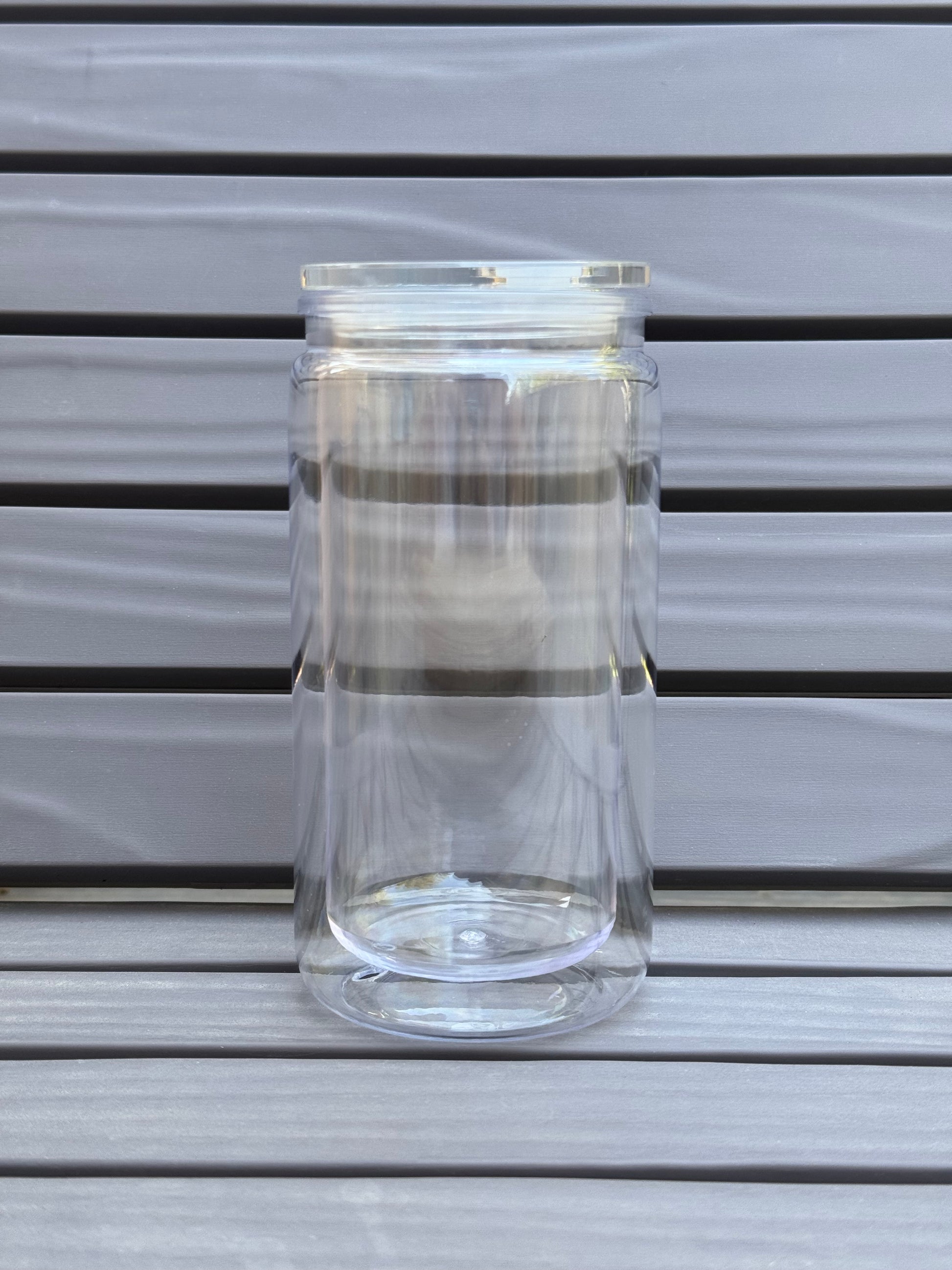 16 oz. acrylic snowglobe cup, comes with clear acrylic lid and reusable plastic straw.