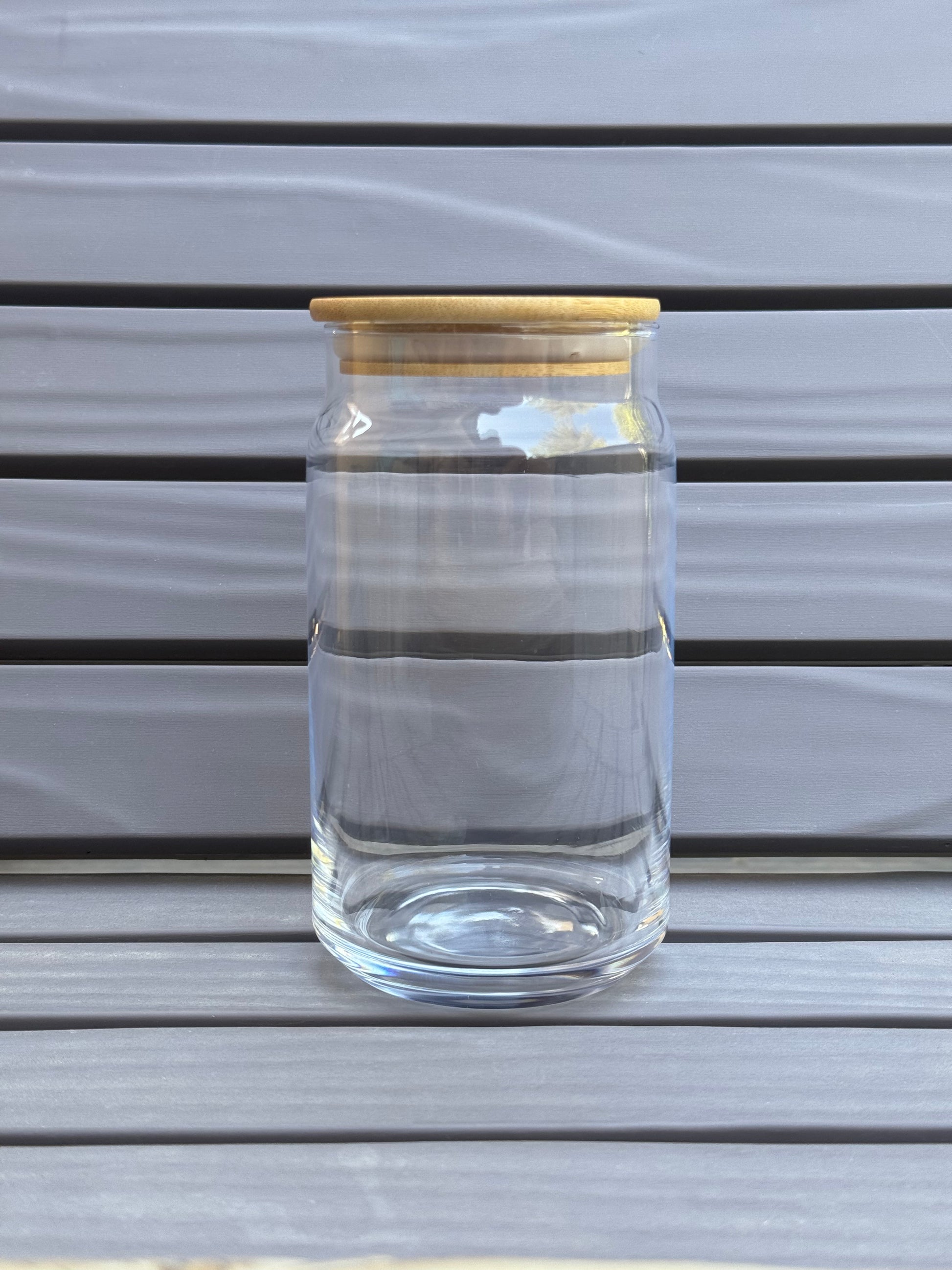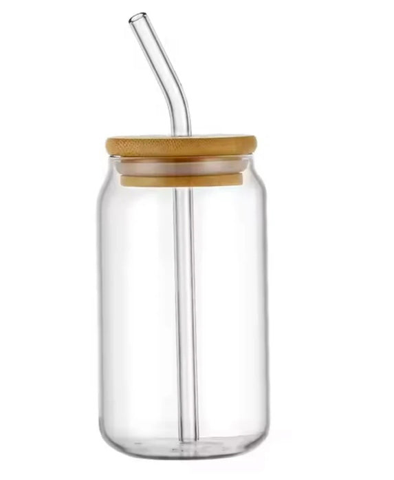 16 oz. Libbey-inspired beer glass can, comes with bamboo lid and reusable glass straw.