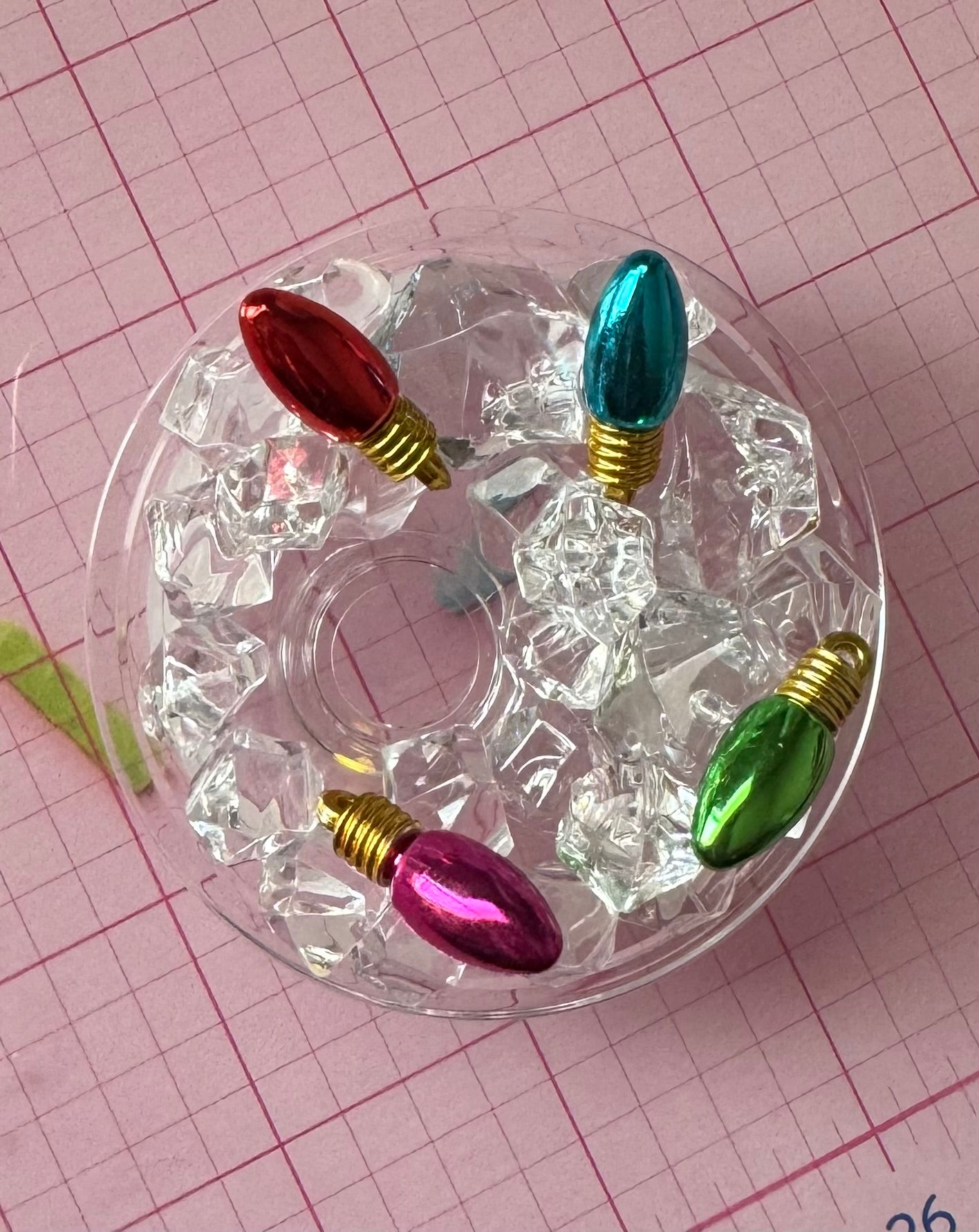 Custom lid with faux ice and Christmas bulbs sold separately.