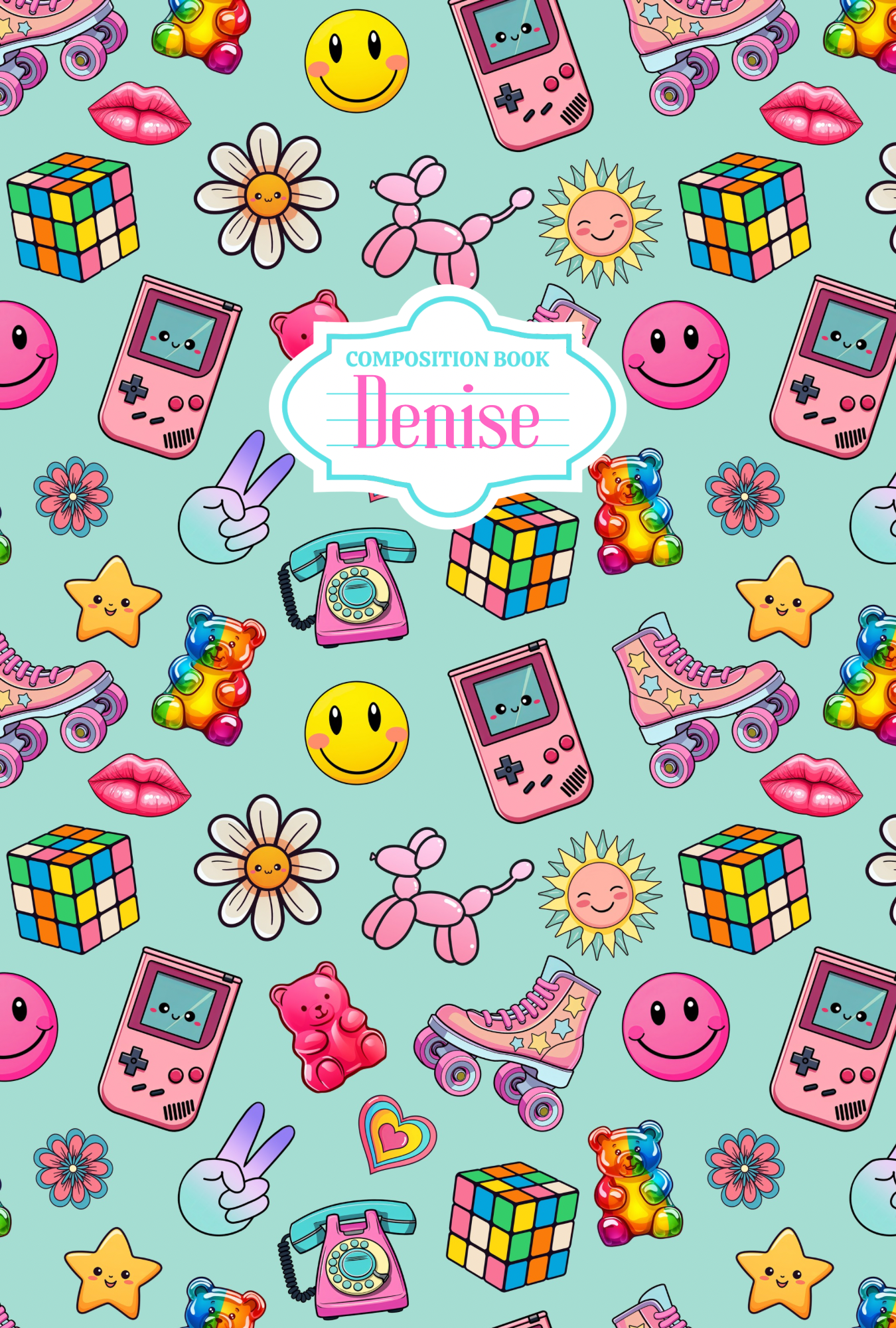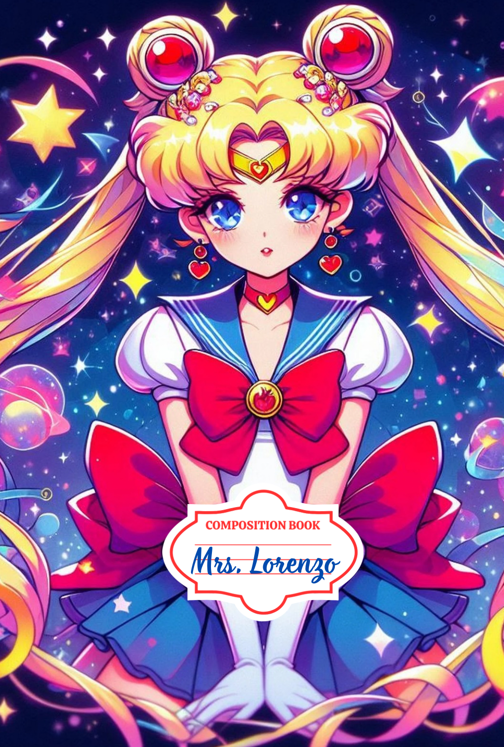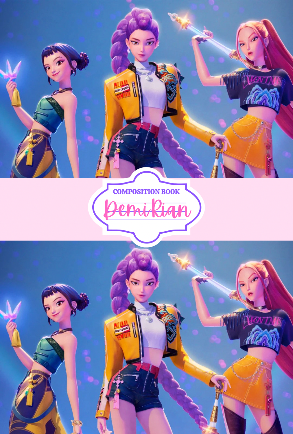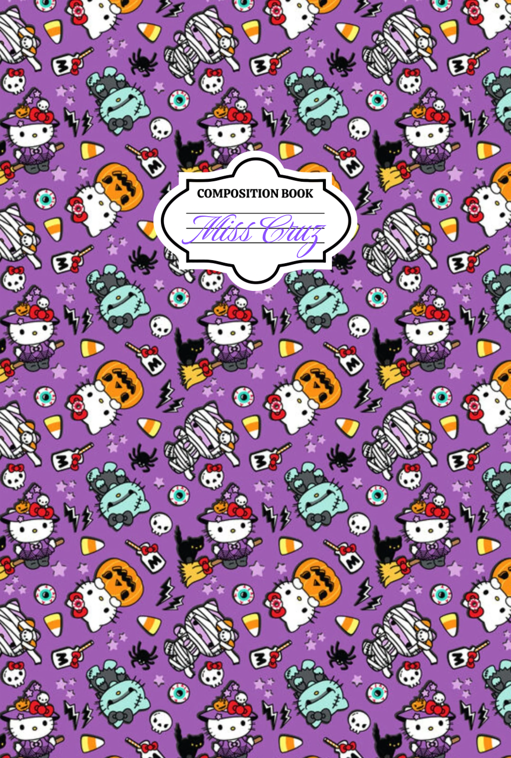 This listing is for one custom Composition Notebook. The front and back covers are fully wrapped in the same design and finished with a holographic laminate for added durability and shine.