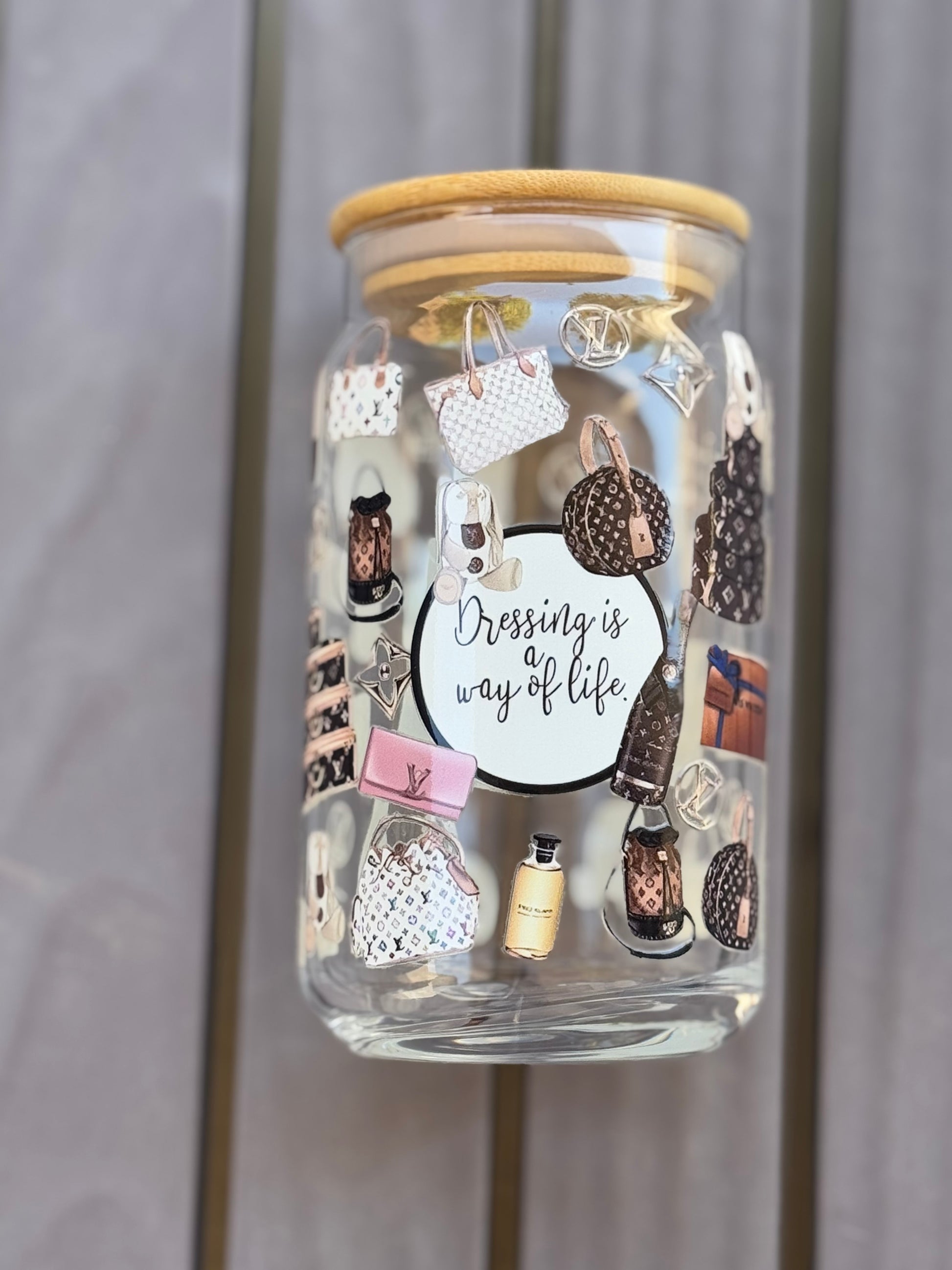 16 oz glass cup comes with bamboo lid and reusable glass straw.