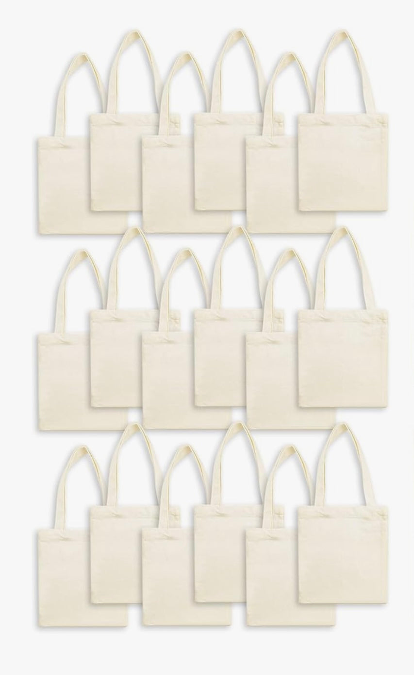 This listing is for one 8 x 7.5 beige black canvas mini tote bag.