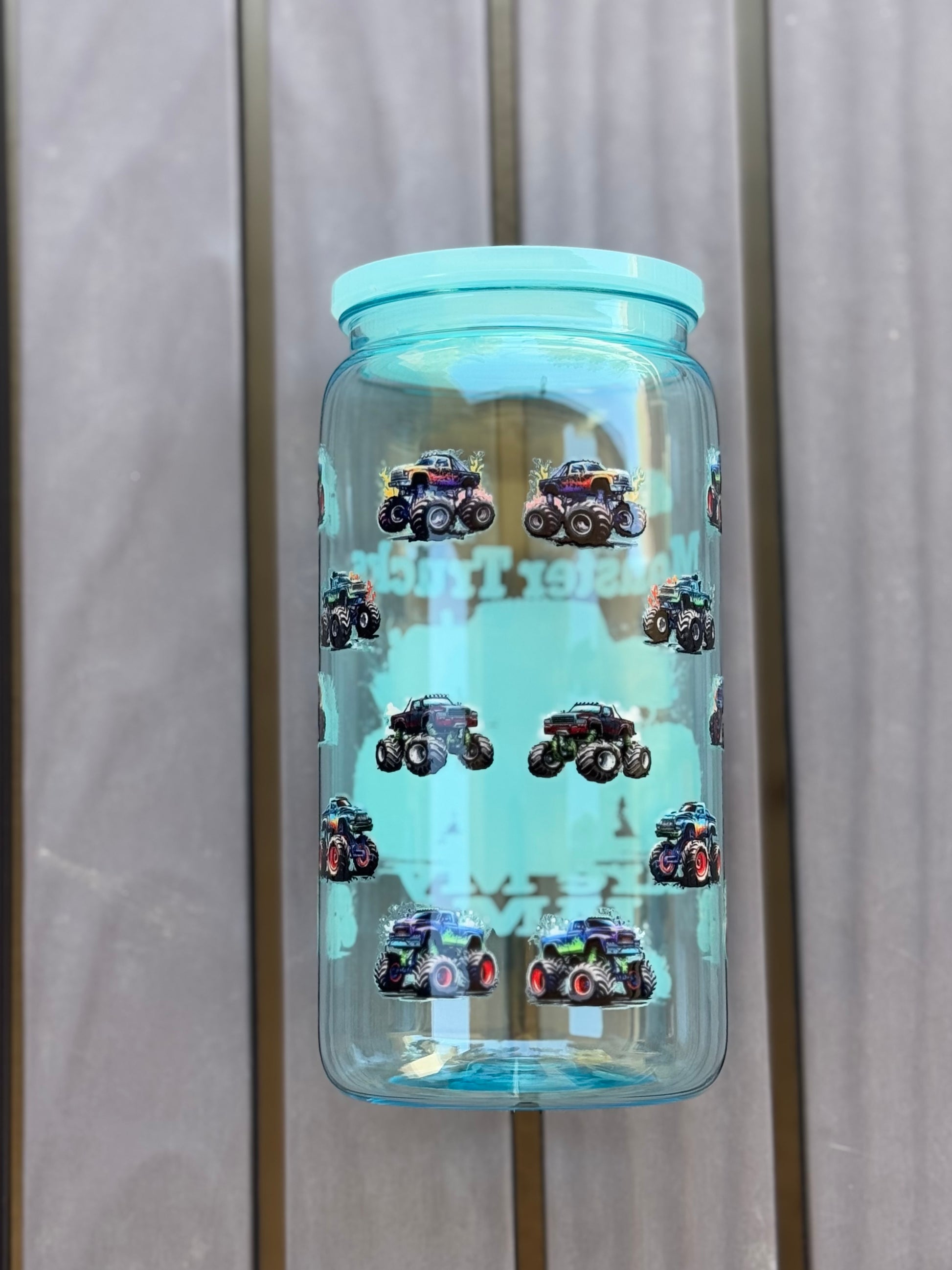 16 oz blue acrylic cup, comes with blue plastic lid and reusable plastic straw.