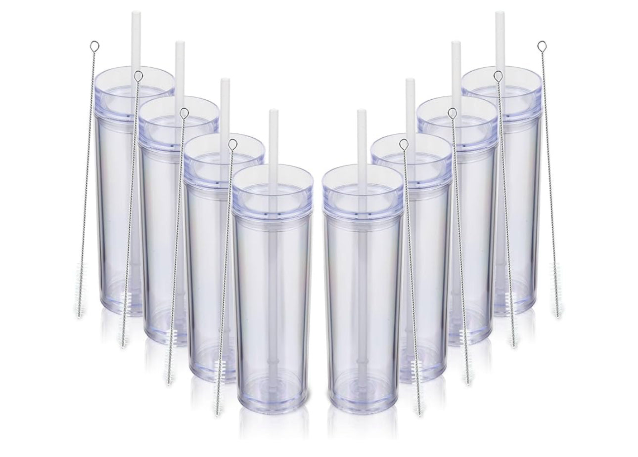 This is for one 16 oz. or 20 oz. insulated acrylic skinny tumbler which comes with a lid and reusable plastic straw.