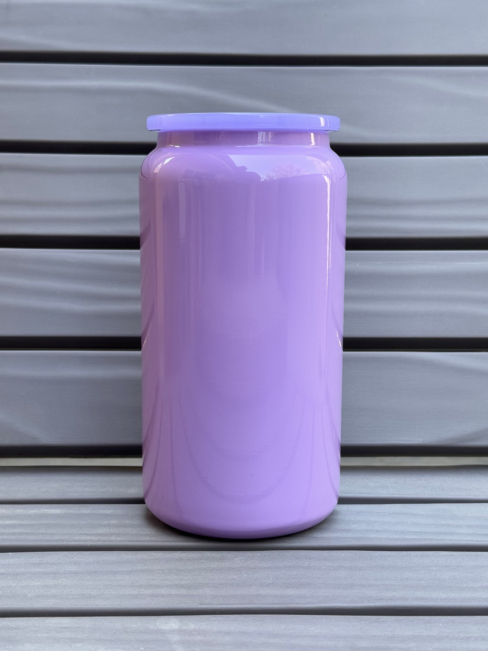 16 oz. Macaron Purple Stainless Steel cup. Comes with matching plastic lid and colored reusable plastic straw.