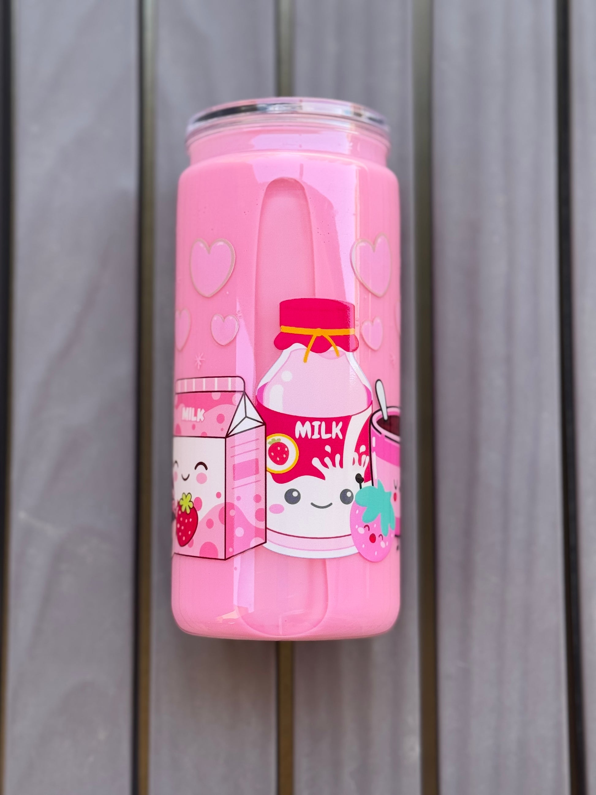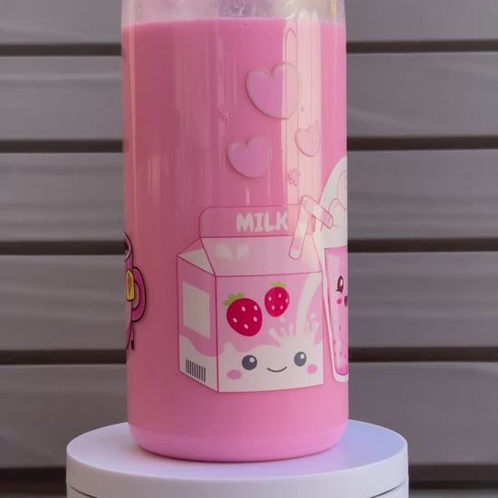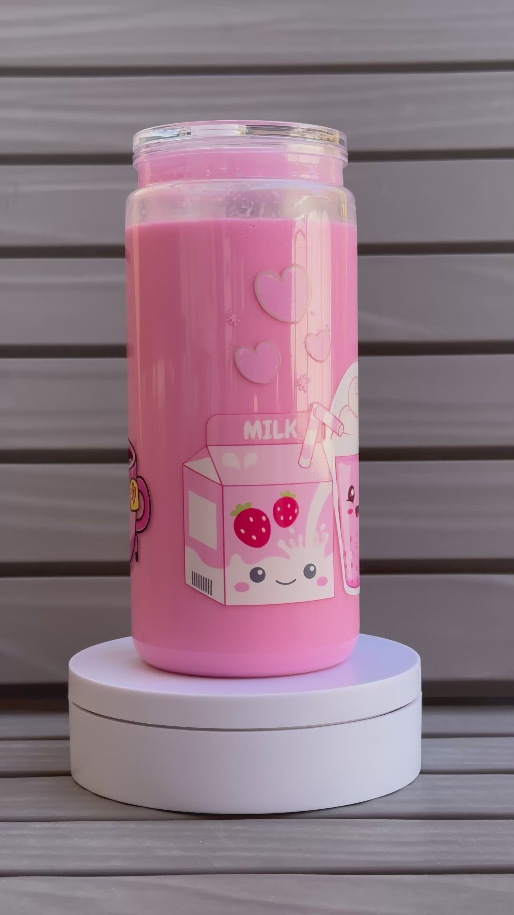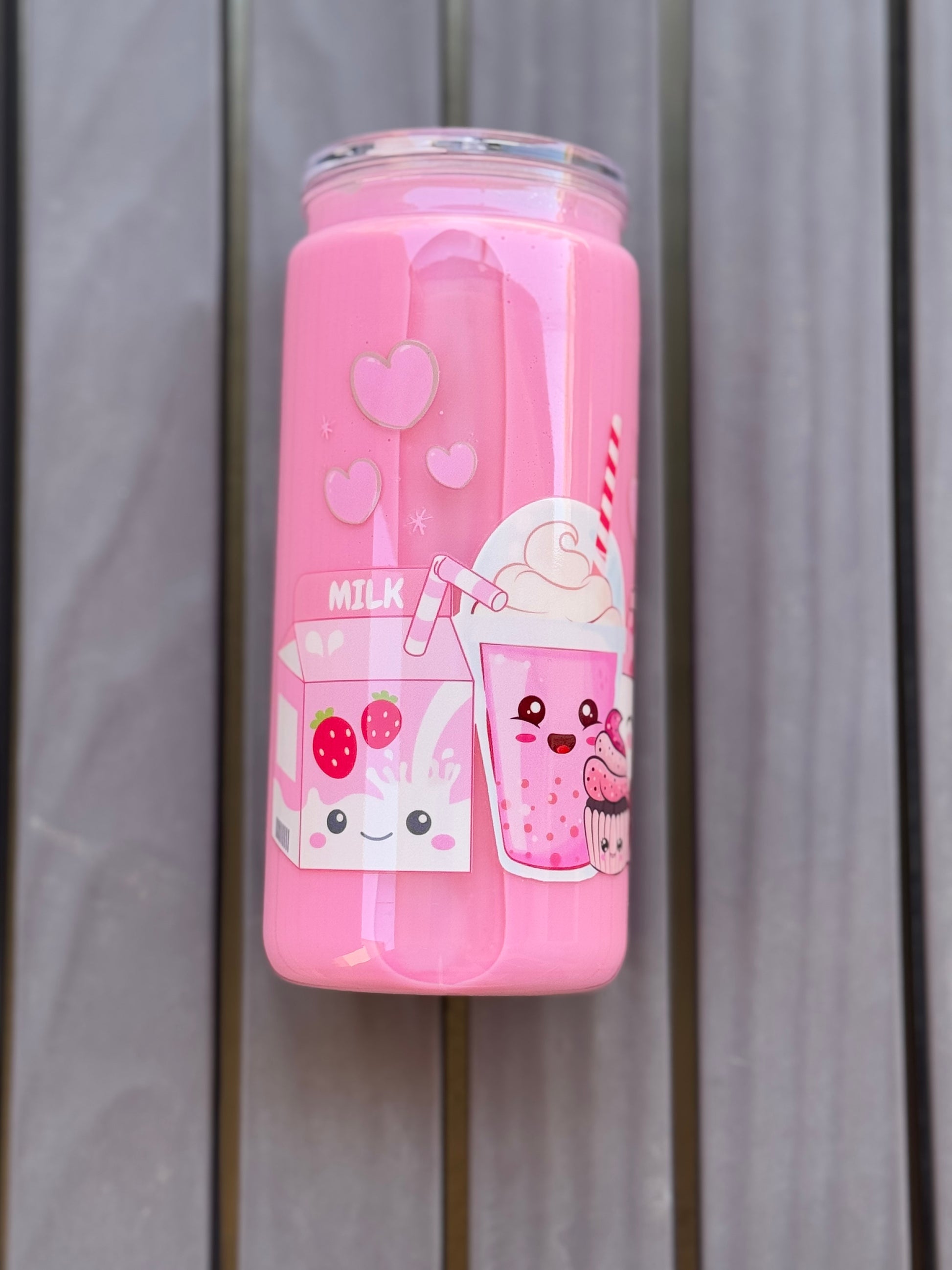 This 20 oz. acrylic snowglobe cup is filled with a fun pink swirl that looks just like creamy strawberry milk. It comes with a clear lid and a reusable plastic straw—cute, sippable, and totally Instagram-worthy!